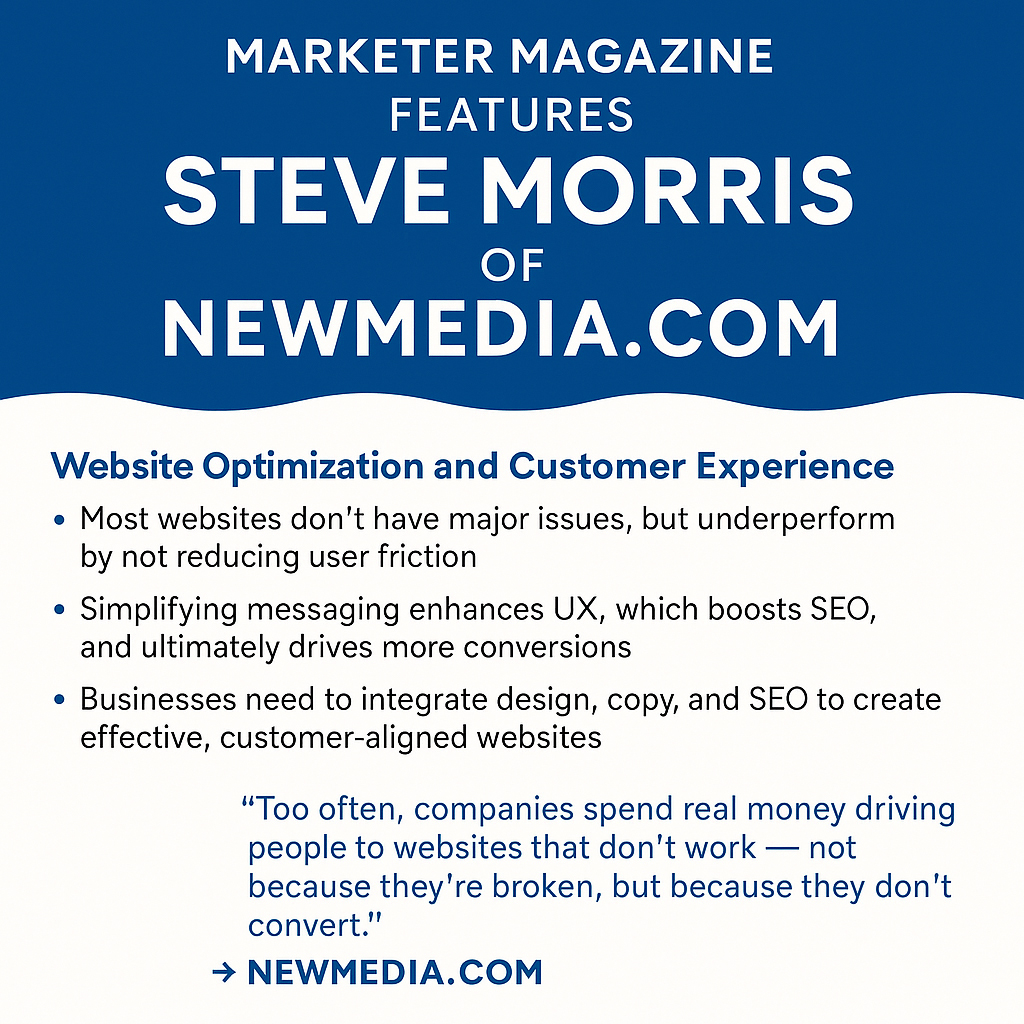 NEW YORK, NY, UNITED STATES, October 3, 2025 /EINPresswire.com/ -- In an exclusive Q&A published by Marketer Magazine, Steve Morris, Founder and CEO of acclaimed digital agency NEWMEDIA.COM, offers expert insight into the evolving landscape of website optimization with a focus on user experience, search performance, and the measurable business impact of smarter design.